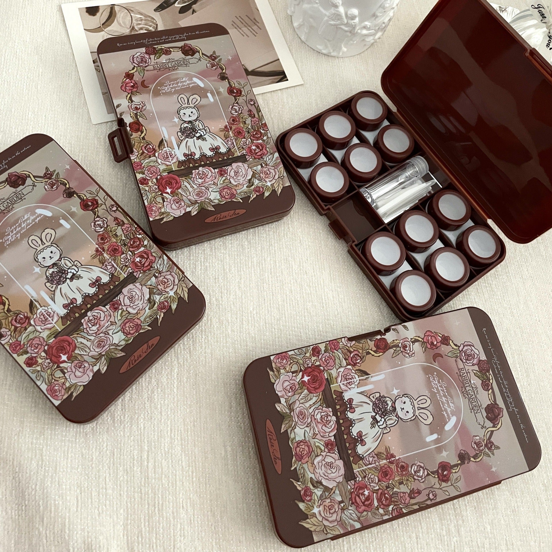 Rose Rabbit Garden Colored Contact Lens Case